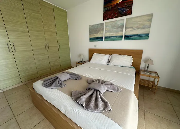 Für Ihren Komfort bietet das Apartment Nissi Beach Escape - 5 Min Walk To Paradise eine Küche mit einem Wasserkocher, einem Kühlschrank und einem Herd. Das Apartment Nissi Beach Escape - 5 Min Walk To Paradise ist ziemlich nah an der Bushaltestelle 102 Nissi Beach. Machen Sie Ihren Aufenthalt in den Unterkünften noch spannender, indem Sie Aktivitäten wie Radfahren genießen. Dieses Apartment bietet einen Swimmingpool und eine Terrasse für den Komfort der Gäste.